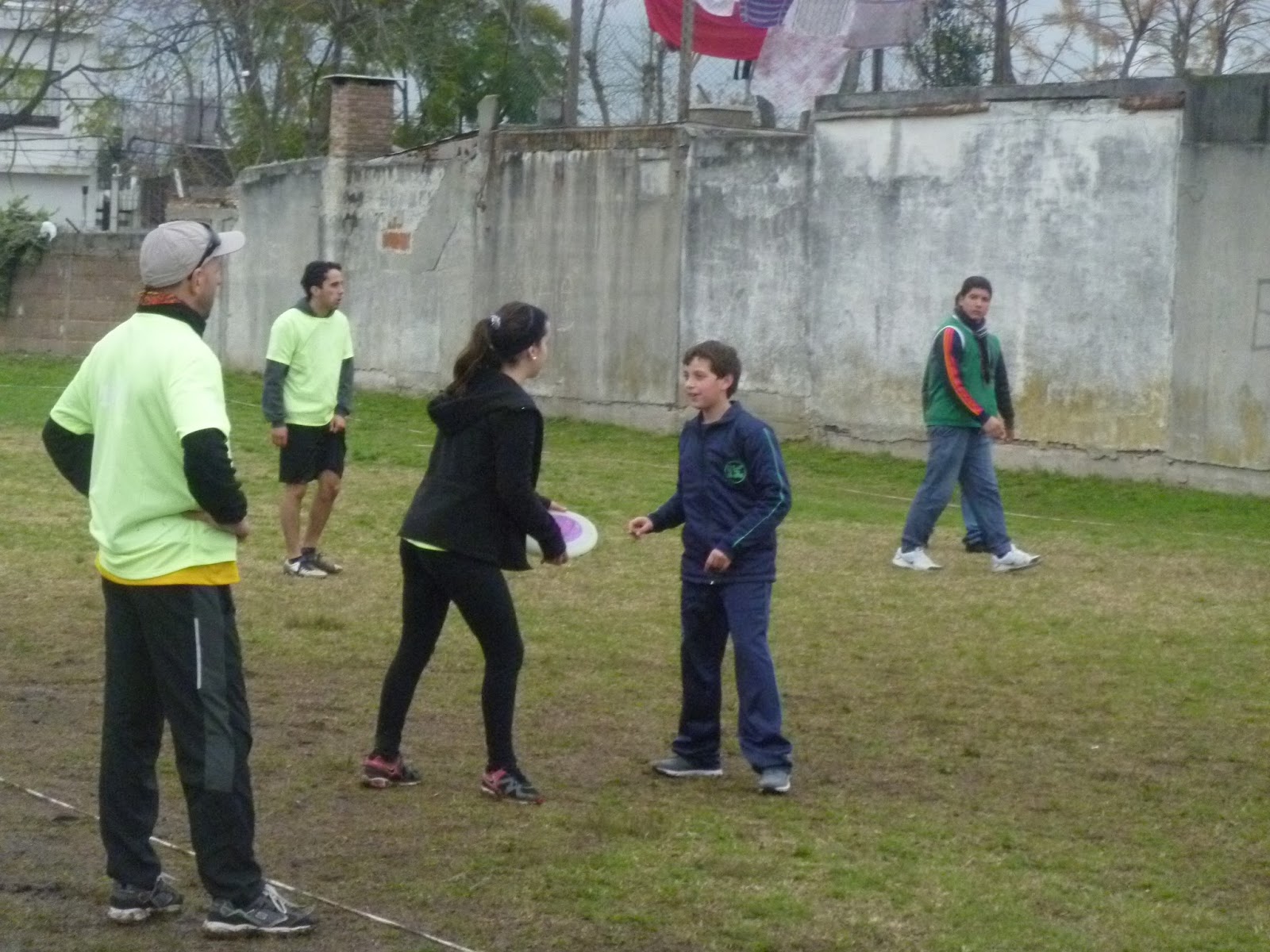 Luego pasamos a la cancha! Ahi los chicos aprendieron a tirar, para luego terminar jugando Ultimate con nosotros!!